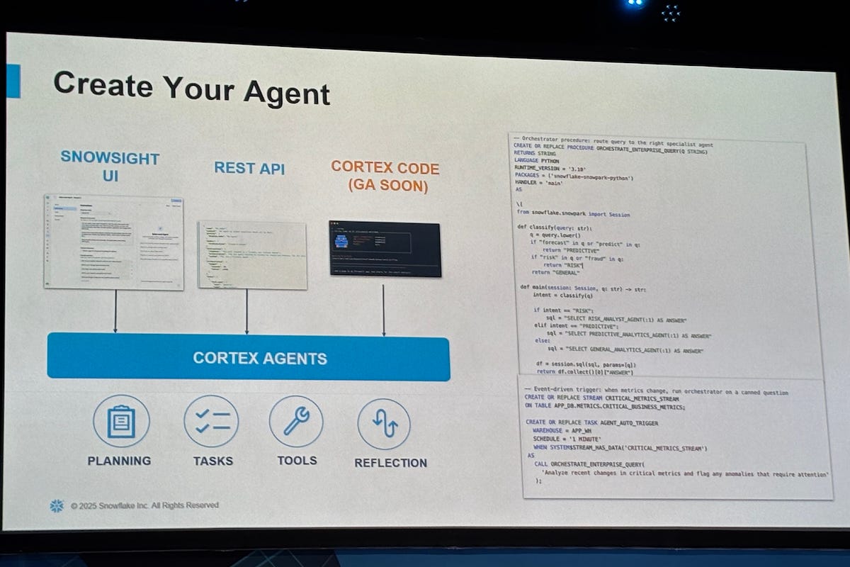 “What we recommend at Snowflake is having an agent that’s incredibly specific, so specific agents for specific tasks,” she said. “This is where we’re seeing a lot of improvements in quality.”