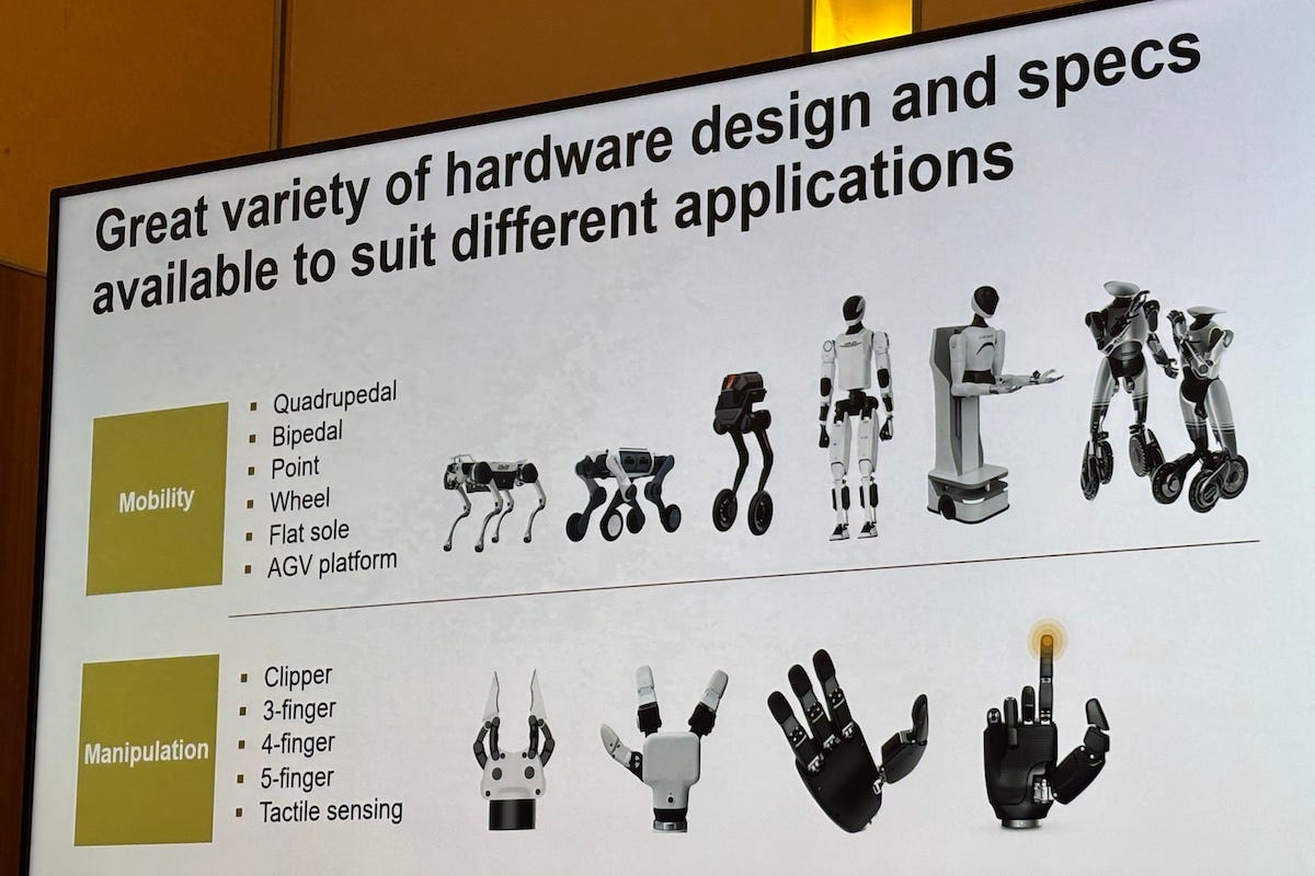 According to Liu, many of these companies are now integrating hardware, software, and AI-driven “robotic brains,” producing a sweeping variety of form factors from bipedal and wheeled humanoids to adaptable quadruped hybrids.
