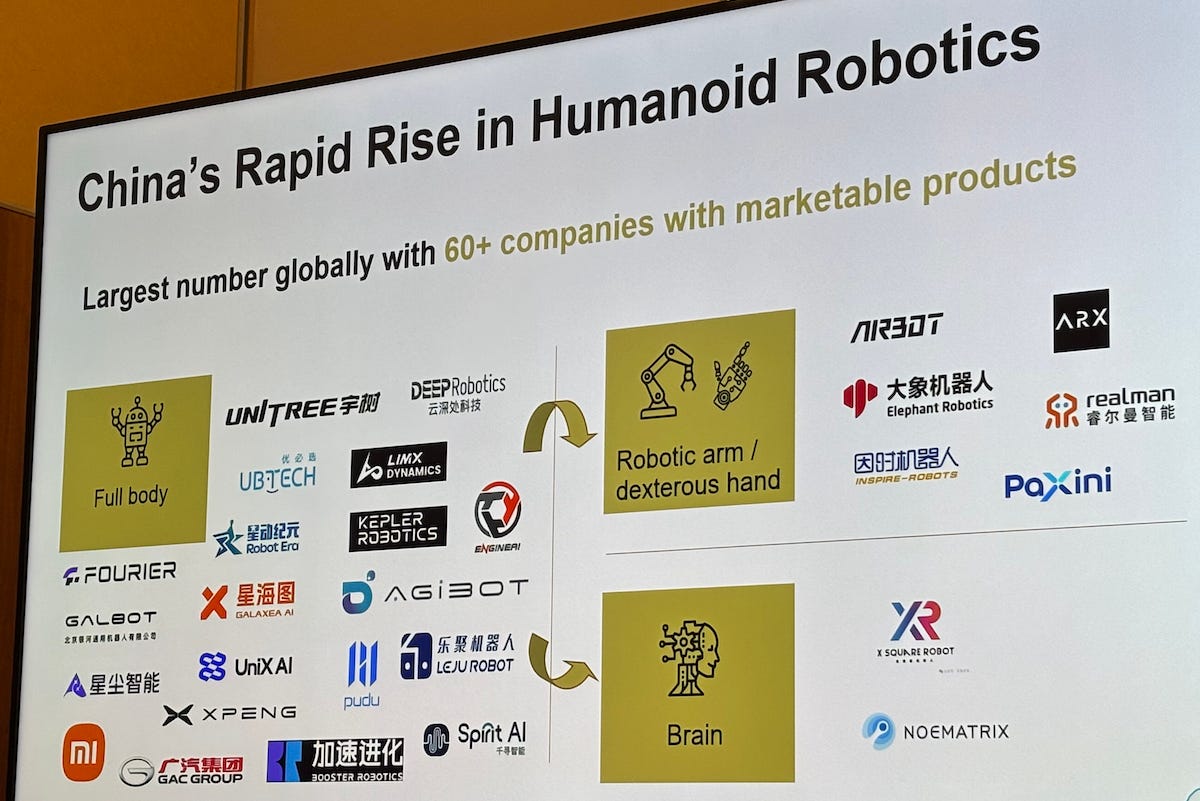 “Forty to sixty percent of humanoid components can be sourced from China’s electric vehicle supply chains. This existing infrastructure gives Chinese manufacturers a huge cost and speed advantage,” she added. “That’s why the variety and quality of designs you see in China are unmatched anywhere else.”
